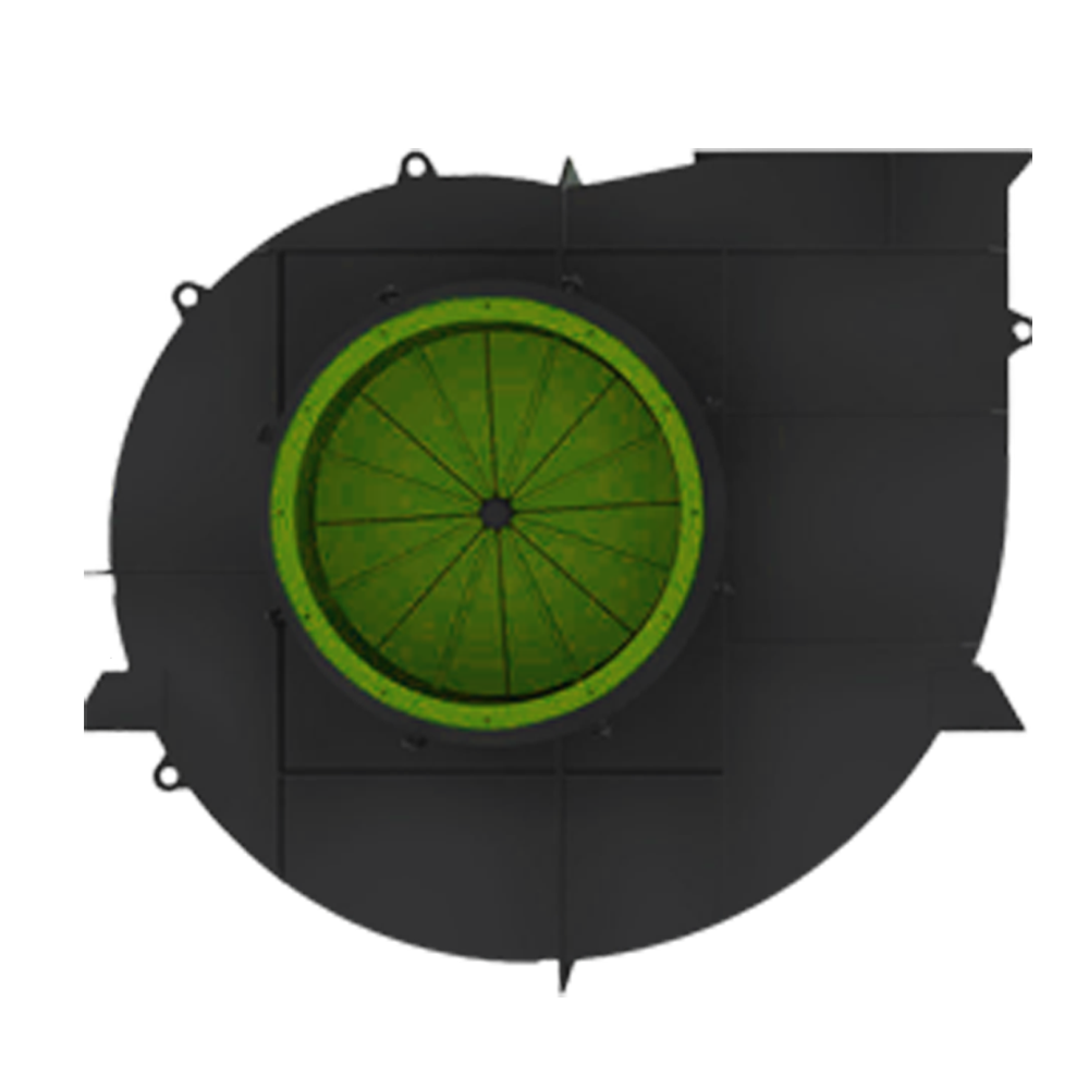 Рабочее колесо включает 16 назад загнутых лопаток, ступицу, задний и передний диск. Спиральный корпус дымососа Д-6,3 состоит из обечайки и двух боковых стенок. Улитка дымососа изготовлена из листовой и профильной стали.