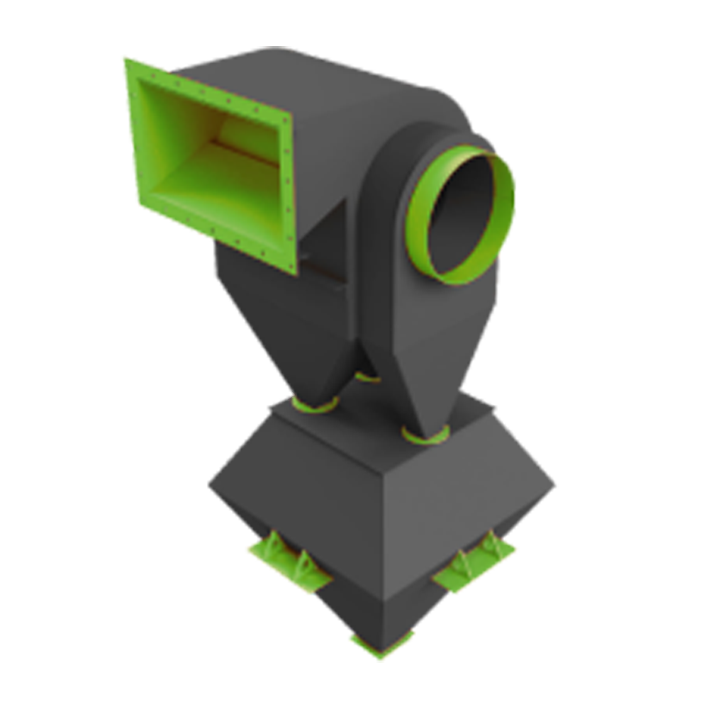 Внизу корпуса располагается бункер с шибером. Пылеуловитель опирается на опорный пояс из уголков.